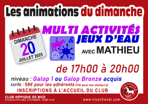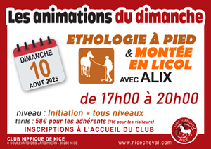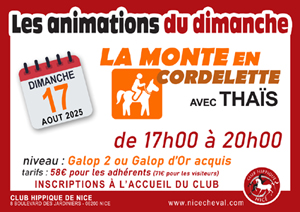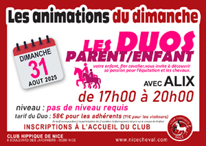 Les inscriptions se font à l'accueil du club ou par email contact@nicecheval.com